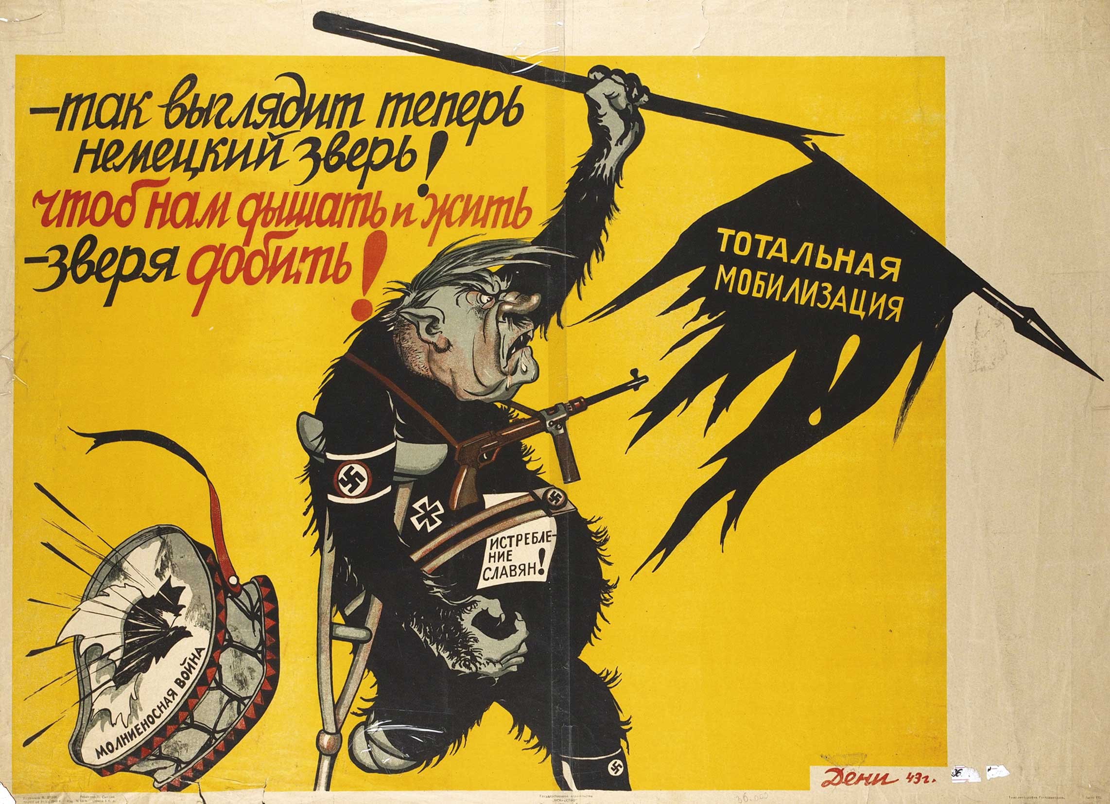 Плакат "Так выглядит теперь немецкий зверь. Чтоб нам дышать и жить - зверя добить!" / худ. В. Дени. М.; Л.: Госиздат "Искусство", 1944.