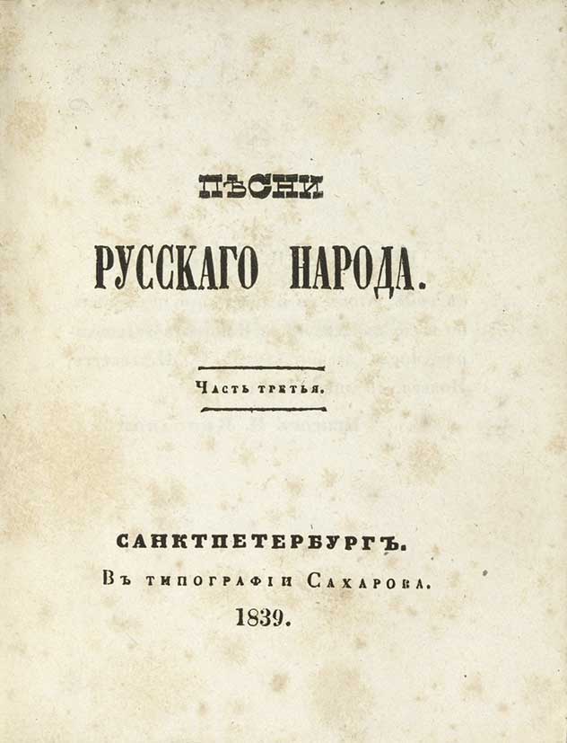 [Сахаров, И.] Песни русского народа. В 5 т. Т.3. СПб.: В типографии Сахарова, 1839.