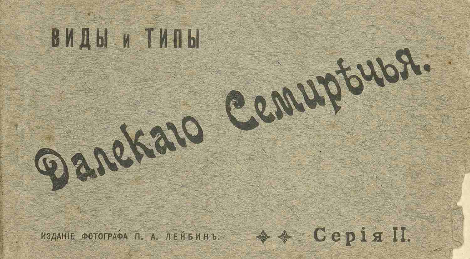 [Сувенирный альбом открытых писем]. Виды и типы далекого Семиречья. Серия II. М.: Фототип. Шерер, Набгольц и Ко; Издание фотографа П.А. Лейбин, б.г. 25 л. 15 х 8,5 см. В издательской обложке. Обложка частично отходит от блока. В издании воспроизведены фотографии о жизни и быте киргиз, а также городов и их окрестностей: Пинска, Верного, Пржевальска и проч.