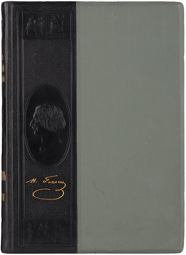 Иллюстрированное полное собрание сочинений Н.В. Гоголя / под ред. А.Е. Грузинского со вступ. статьей проф. Д.Н. Овсянико-Куликовского. В 8 т. Т. 1-8. М.: Книгоиздательство "Печатник", [1912-1913]. 26,5 х 18,5 см. В восьми издательских полукожаных переплетах с золотым и блинтовым тиснение по корешкам. Форзацы бумаги растительного орнамента. Множество иллюстраций на отдельных вклейках. Блоки чистые. Издание в отличной сохранности.