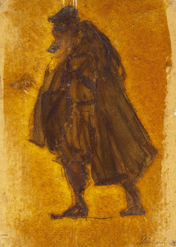 СОЛОГУБ, ЛЕОНИД РОМАНОВИЧ. Лот из двух рисунков. 1. Солдат в шинели. 1910-е гг. Бумага, смешанная техника.