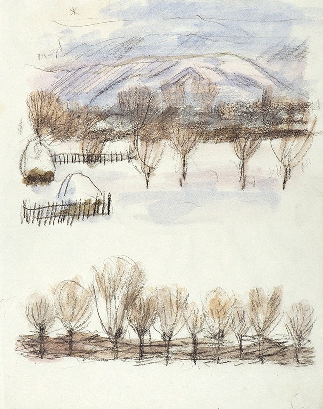 ТЫРСА, НИКОЛАЙ АНДРЕЕВИЧ (1887-1942). Зимний пейзаж. 1936 г. Бумага, графитный карандаш, акварель.