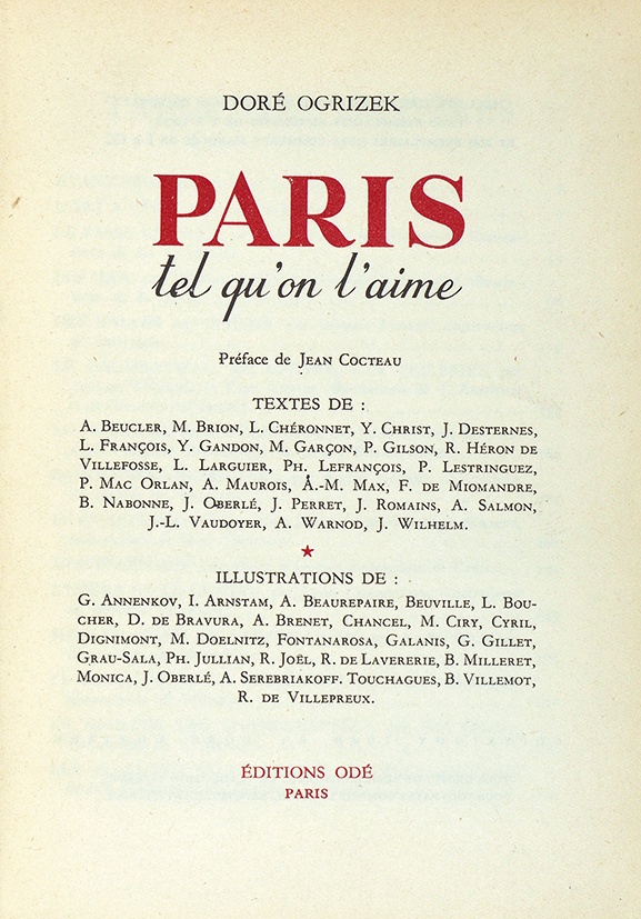 Огрыжек, Доре. Любимый Париж. / Ogrizek, Doré. Paris tel qu'on l'aime / предисловие Жана Кокто / ил. Ю. Анненкова и др. Экземпляр № 43. Париж: ODÉ, 1949.