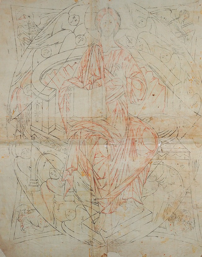 Прорись иконы Господь Вседержитель. Первая половина XIX в. Бумага, прорись, тушь.