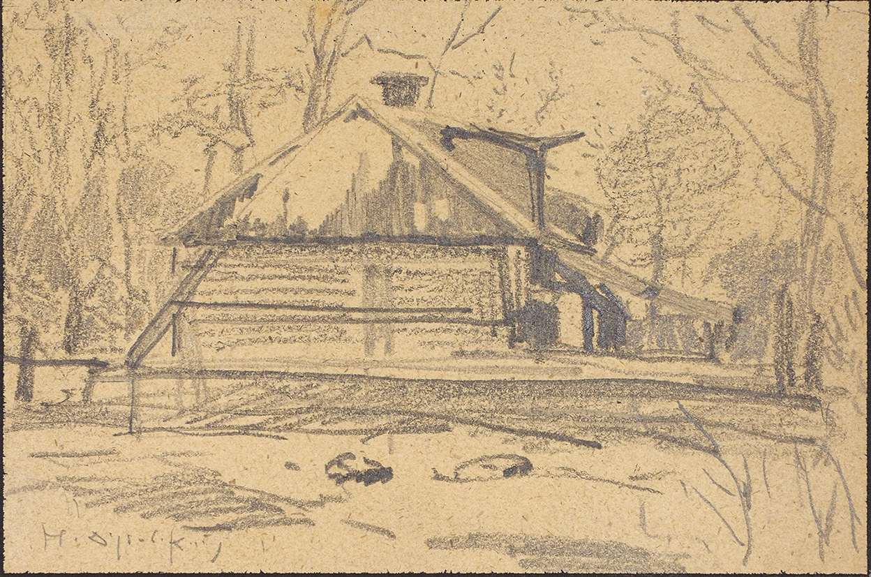 ДУБОВСКОЙ, НИКОЛАЙ НИКАНОРОВИЧ (1859-1918). Весенний пейзаж с домом. 1890-е гг. Бумага, карандаш.