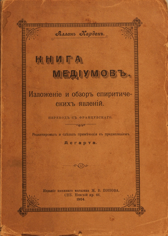 Кардек, А. Книга медиумов. Изложение и обзор спиритических явлений. СПб.: С.-Петербургская Электропечатня, 1904.